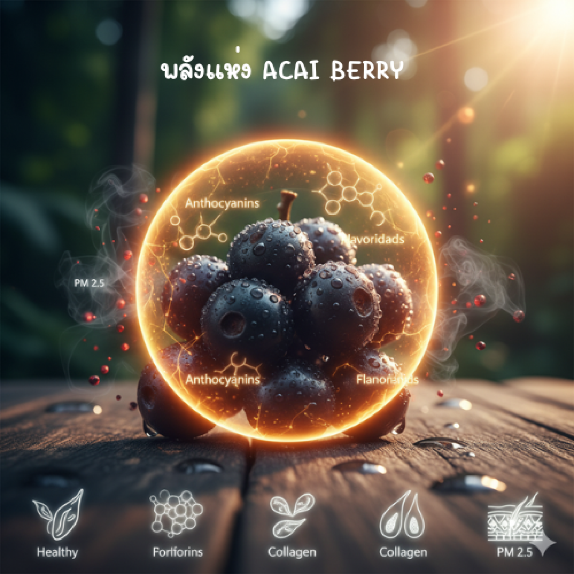 - การฟื้นฟูผิวจากมลภาวะ: ด้วยค่า ORAC ที่สูง การบริโภค Acai Berry จึงช่วยให้เซลล์ผิวมีความพร้อมในการรับมือกับความเสียหายจากปัจจัยเสี่ยงต่างๆ เช่น $PM 2.5$ และสารเคมีต่างๆ ได้ดีขึ้น